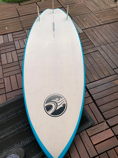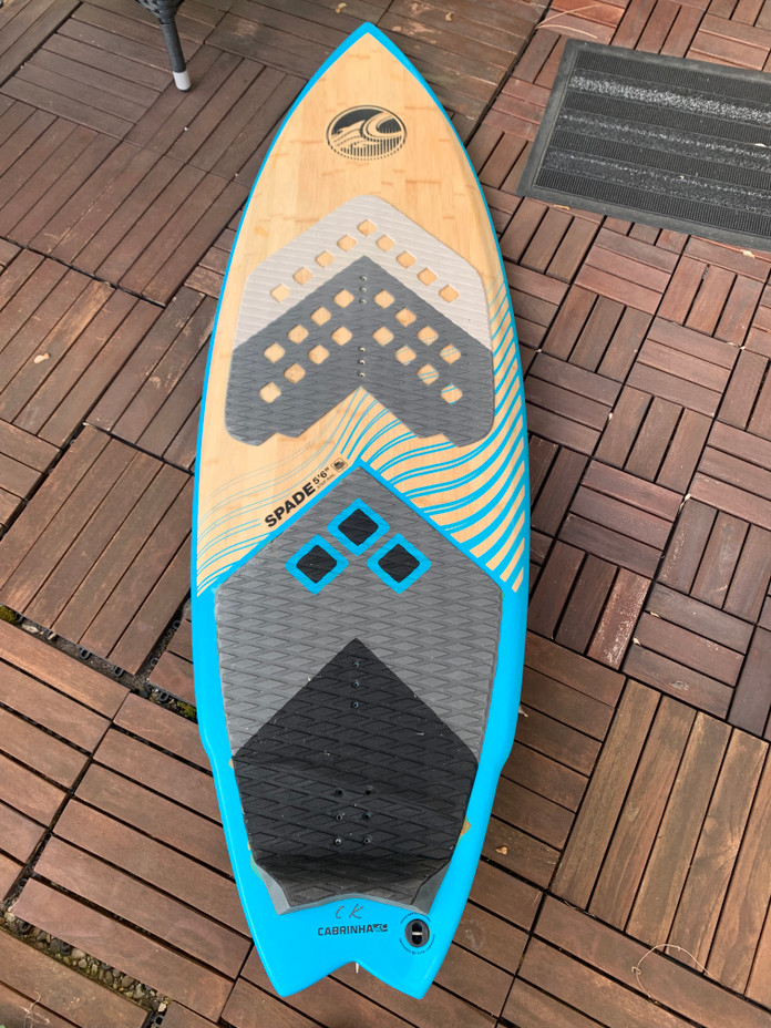 5‘‘6 Kite Waveboard für Wave Einsteiger oder schwerere Jungs oder Mädels. Sehr laufruhig und fehlerverzeihend. Lack ein kleiner Abplatzer rechts siehe Fotos. Rechte Finne kleiner Einschlag. Deckpad am Heck leicht gewölbt und nachgeklebt aber fest dran. Ohne Fusschlaufen, waren auch nie montiert.